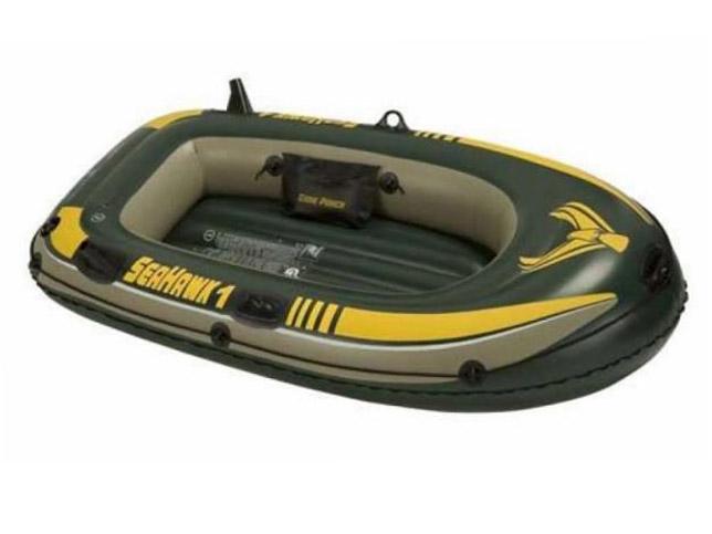Описание товара: Надувная лодка Seahawk-1 68345 - облегчённая модель для рыбалки и отдыха на воде с тремя независимыми воздушными камерами для безопасности и комфортным надувным полом. Лодка сделана из прочного материала ПВХ. Материал устойчив к воздействию бензина, масел, соленой воды и повреждениям. Лодка выдерживает нагрузку до 100 кг и удобна в хранении и переноске. Основные характеристики: